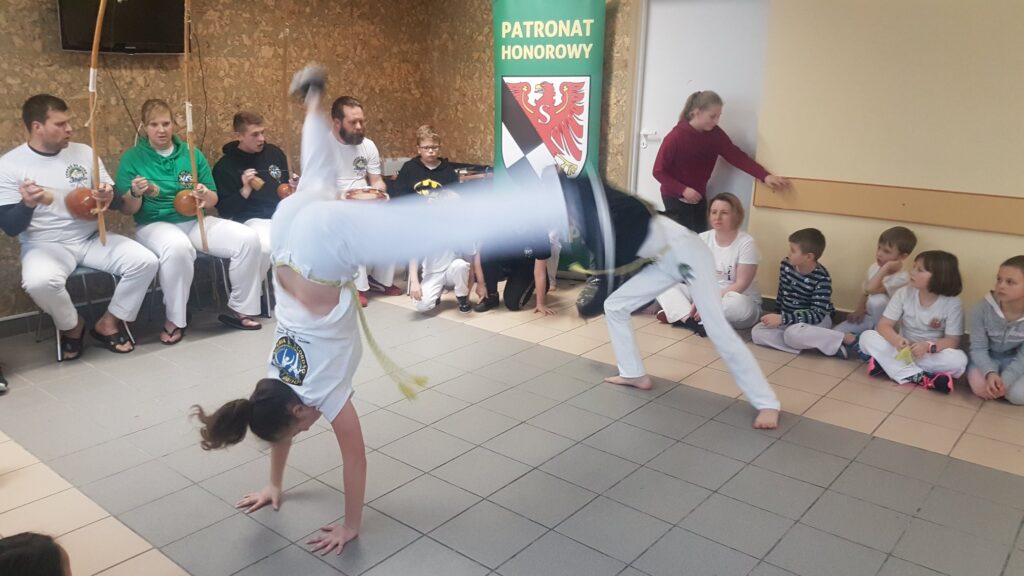 Zacznijmy jednak od początku, czym jest capoeira i skąd wzięła się w Gołdapi? Capoeira wywodzi się z Brazylii i jest nazywana sztuką walki. W rzeczywistości jest połączeniem tańca, muzyki i śpiewu.